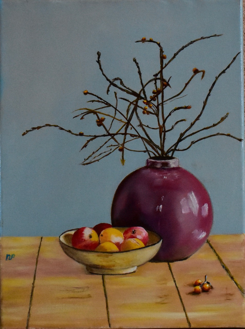 Takjes in paarse vaas